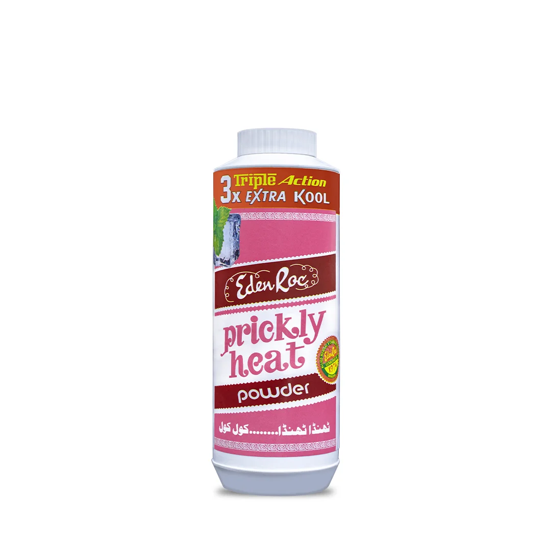 Eden Roc Extra Kool Prickly Heat Powder: A refreshing blend of menthol and essential oils that relieves heat rashes, soothes irritated skin, fights bacterial infections, and provides instant cooling for all-day freshness.